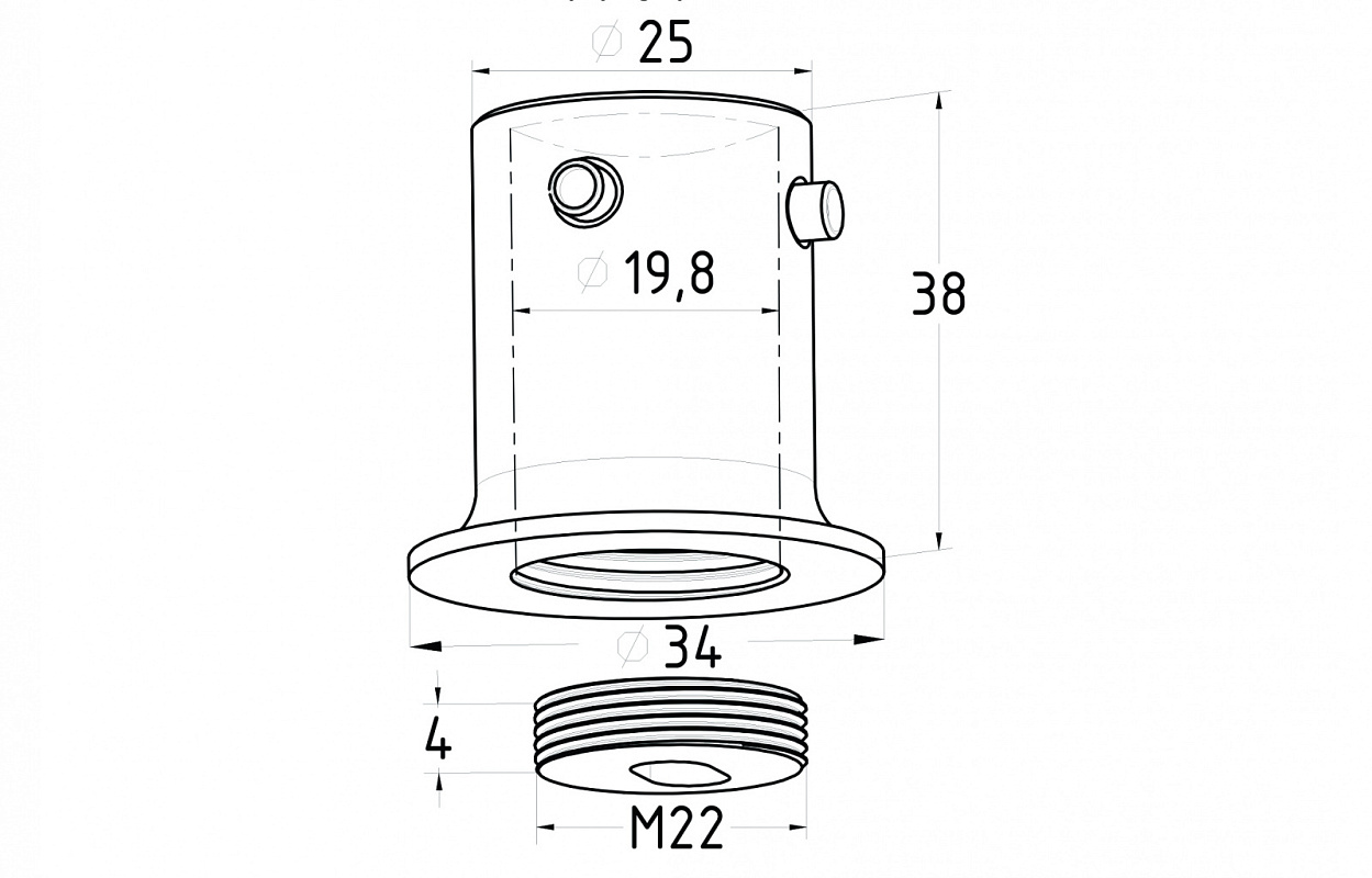 Крепежный элемент труба-стекло, глухой, для трубы 19 мм, цинк-хром полированный t913 PZn