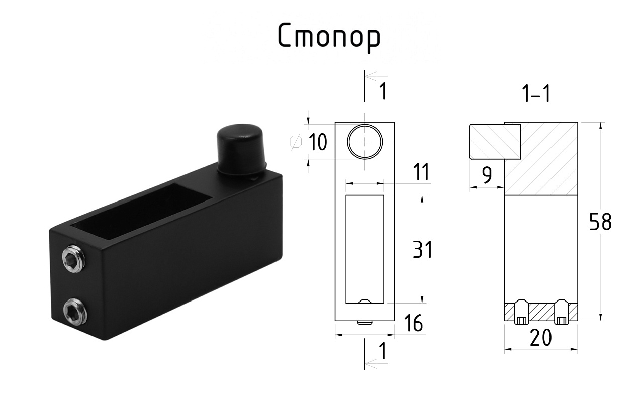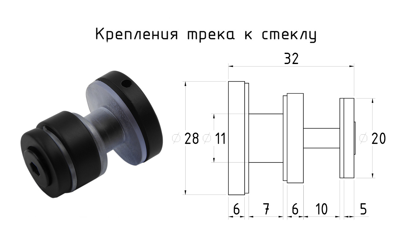 Крепление трека 30х10 к стеклу, AISI 304 черный t449 BL купить в Екатеринбурге