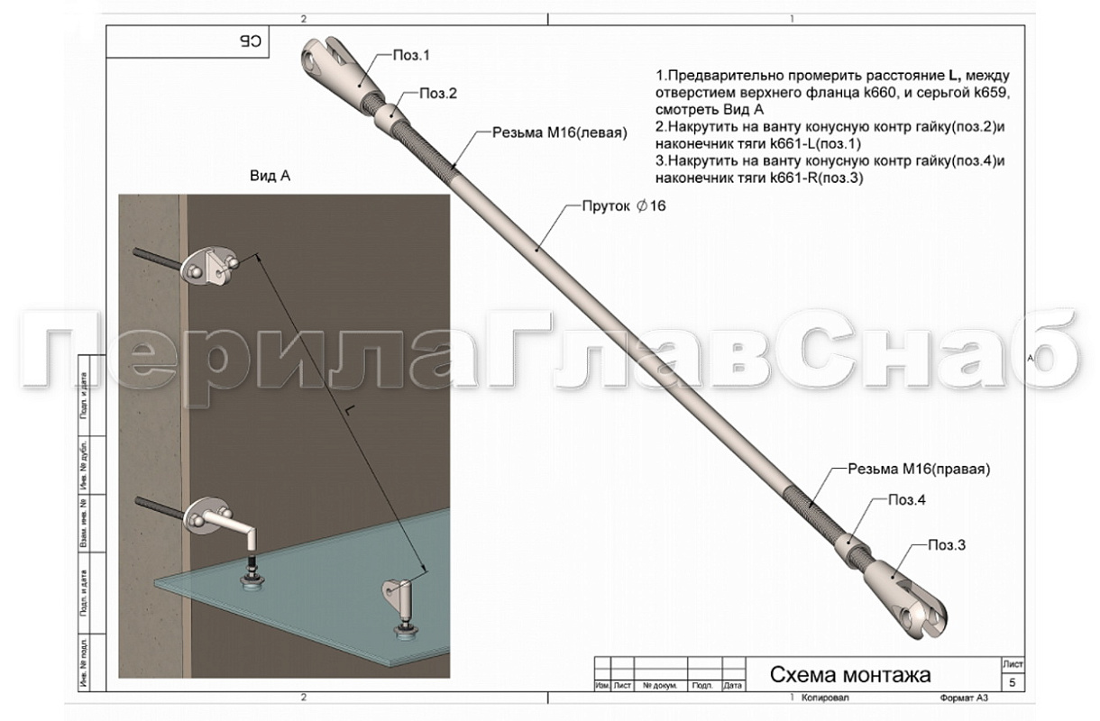 Ванта (тяга) для козырька с резьбой М16, длина 3000-4000мм (AISI 316) k670-16-L4
