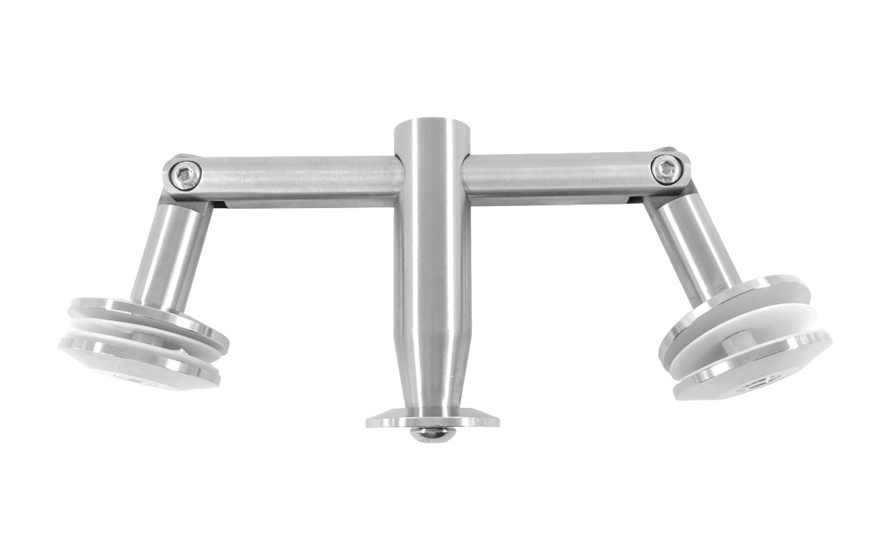 Крепление для двух стекол к ванте, поверхность полированная, марка стали- AISI 304