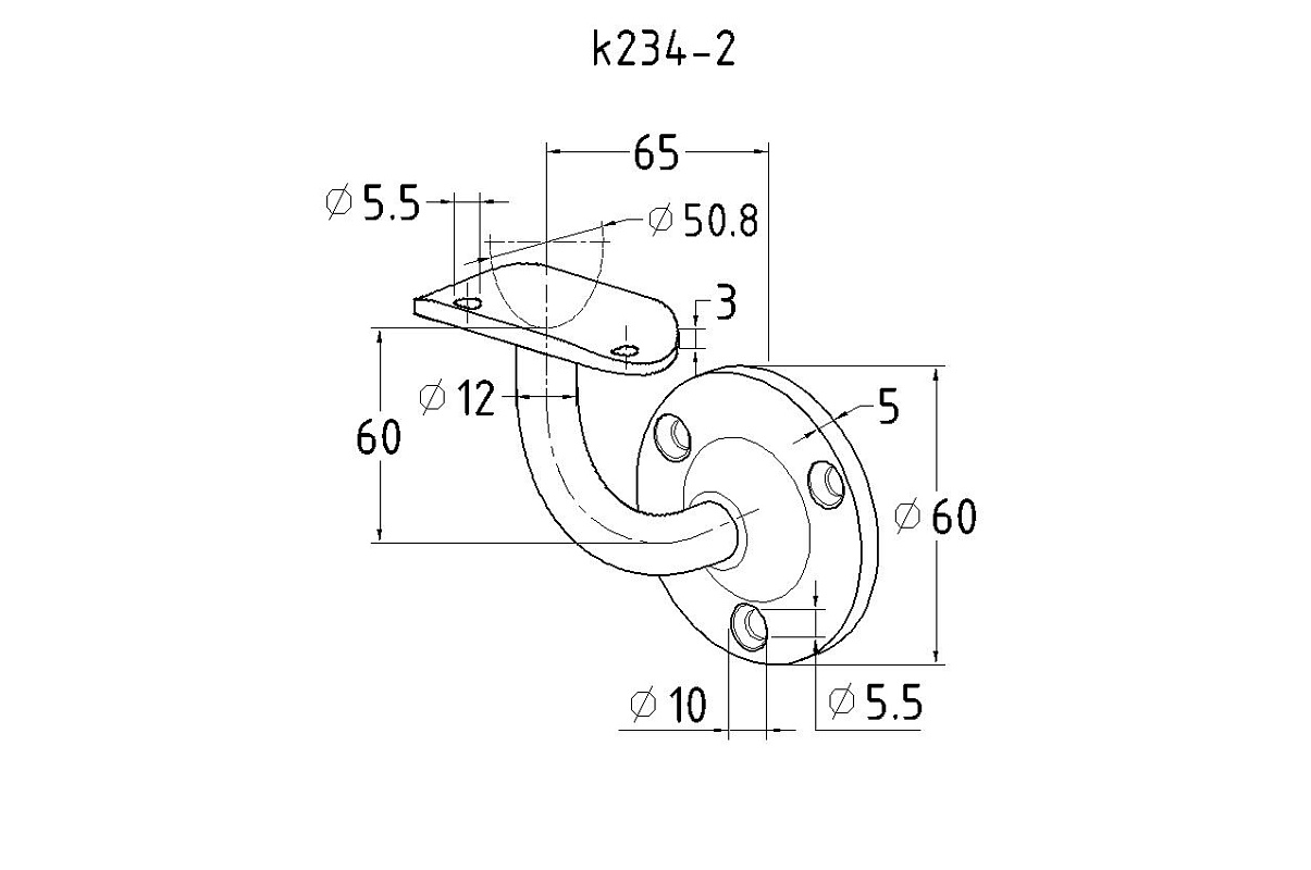 Пристенок с ложементом под Ø50.8 мм, вынос 70х45, Ø60х3 мм, литой, 25х45х2 мм, полированный, (AISI 316) k234-2