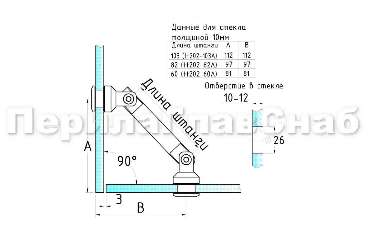 Крепление стекло-стекло, штанга 103 мм, без зенковки tt202-103А SSS