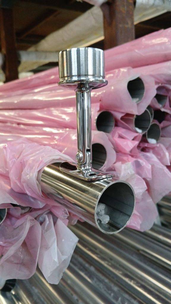 Наконечник палец с алюминиевой системой фиксации на стойке Ø38.1х1.5 мм, регулируемым ложементом под поручень Ø50.8 мм, полированный, литой, нержавеющий (AISI 304) k204 купить в Екатеринбурге