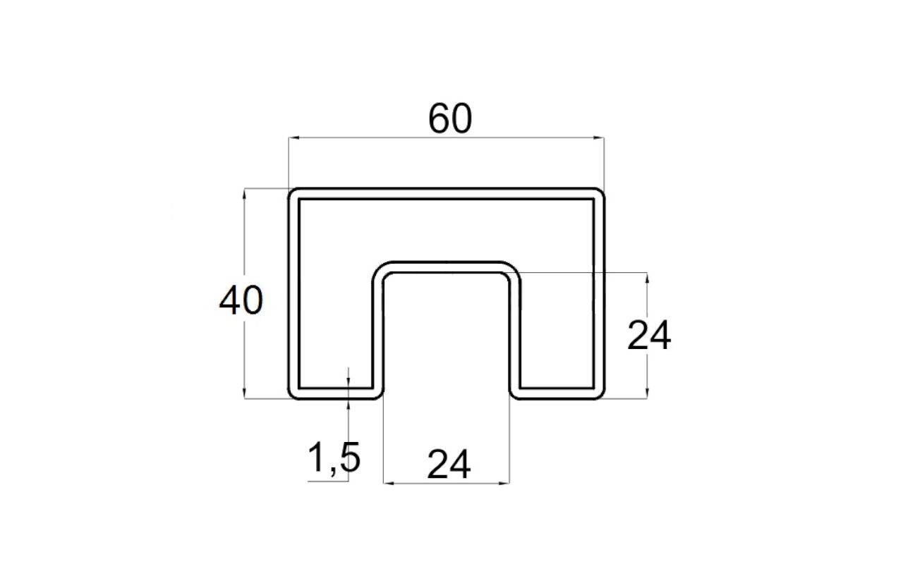 Труба Prima3+, 40х60х1.5 мм, с пазом 24х24мм под стекло, полировка 600GRIT, AISI 201 k824-5