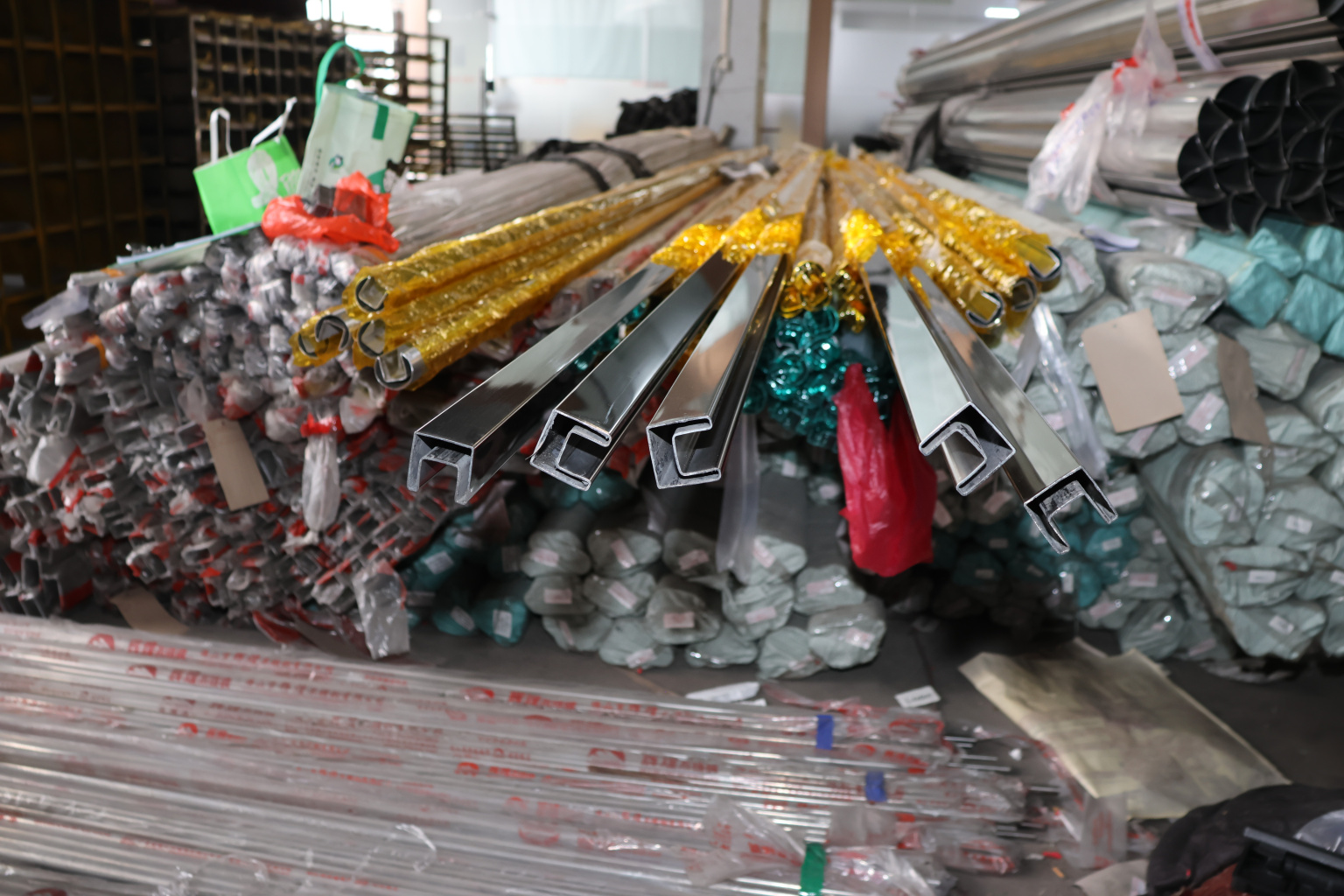 Труба 40х40 мм с пазом 24 х 24 под стекло, AISI201 #600 k856-3