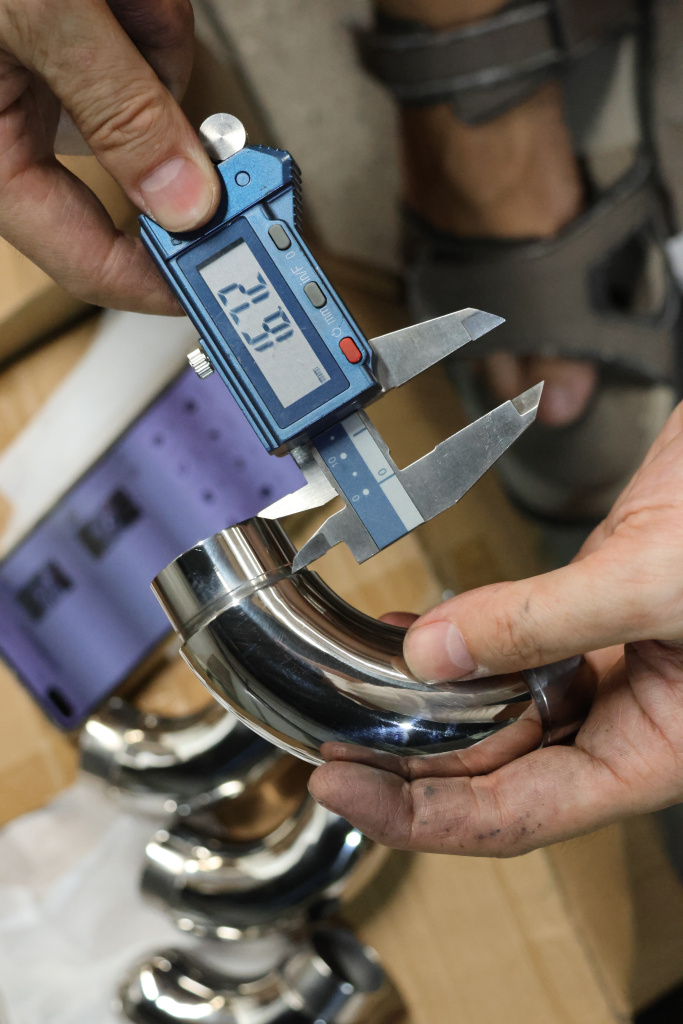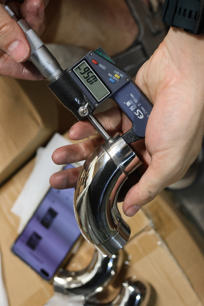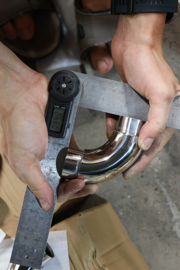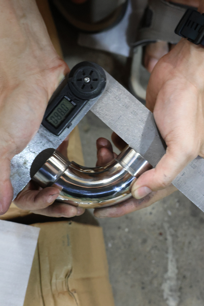 Отвод поручня под Ø38.1х1.5 мм, 90°, литой, полированный, со вставками, (AISI 201) k059-3