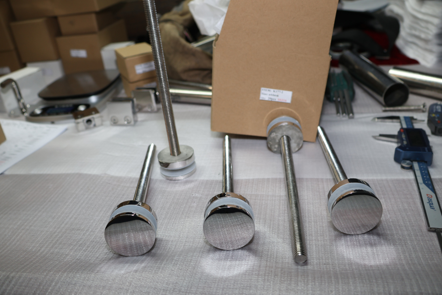 Вся конструкция устанавливается на химический анкер Ф-0799. Для затягивания гайки рекомендуем использовать ключ Фk177-1. Мы рекомендуем делать отверстие в стекле 28 мм для более простого монтажа (для регулировки стекла в плоскостях). В этом случае используется эксцентрик k574