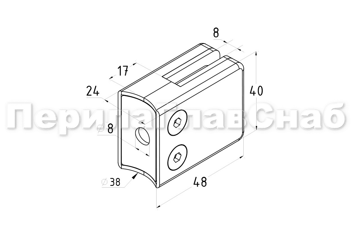 Стеклодержатель штампованный под стекло 8 мм (4+4 мм), под стойку Ø38.1 мм 40х24х55, полированный (AISI 304) k038 купить в Екатеринбурге