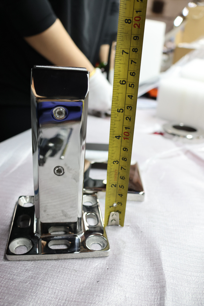Стеклодержатель напольный, плоский 45х50х160 мм, для стекла 10 - 12 мм, полированный, без сверления стекла AISI 304 k282 купить в Екатеринбурге