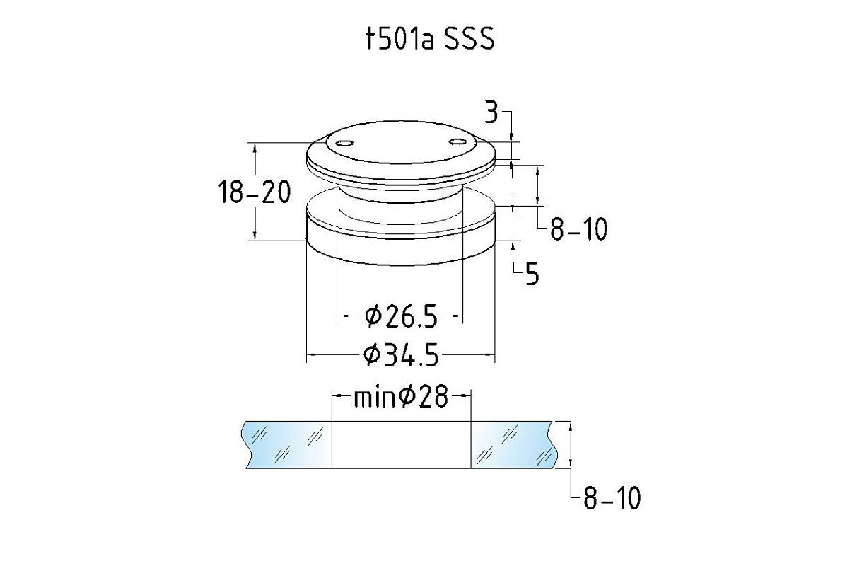 Точечный стеклодержатель 6 мм, нерегулируемый, без зенковки, для стекла 8-10 мм t501A SSS