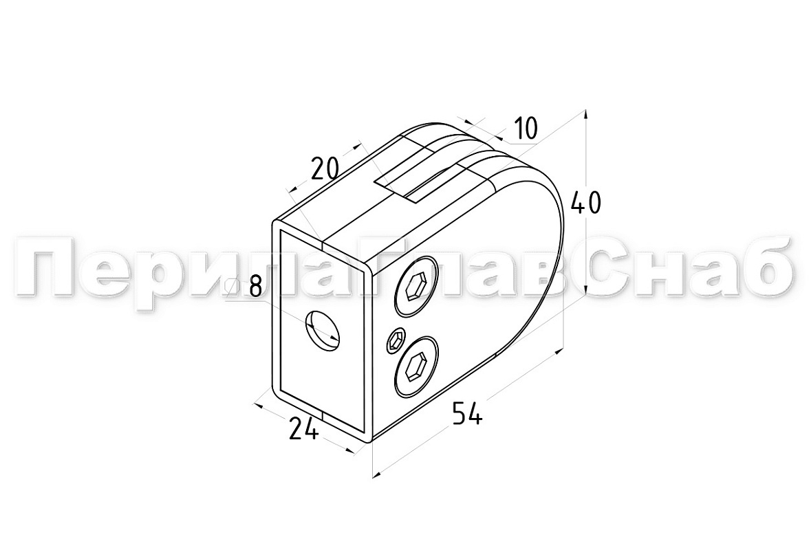 Стеклодержатель штампованный под стекло 10 мм (5+5 мм), на плоскость 40х24х54 полированный (AISI 304) k539-10