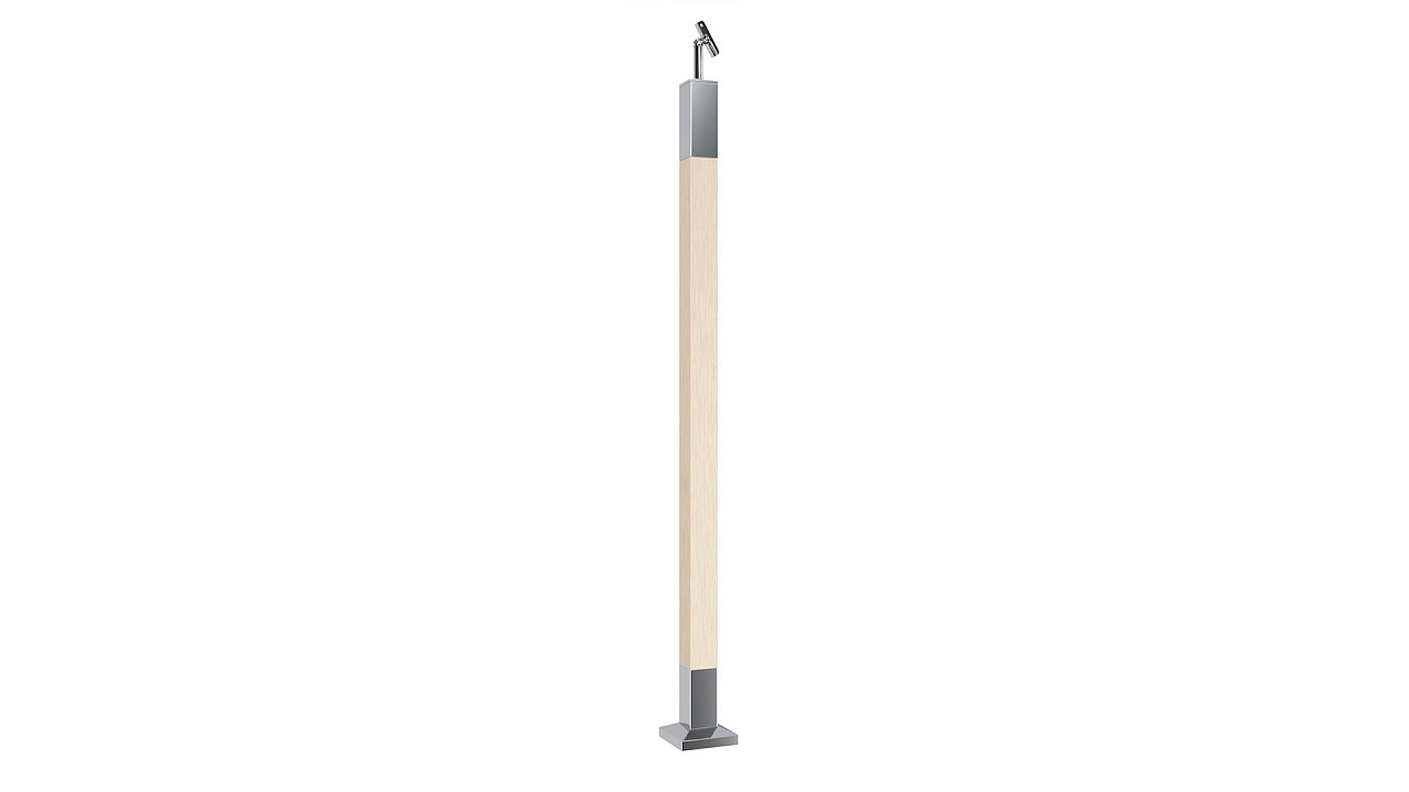 Готовая стойка 40х40х950 мм, деревянная, со вставками из нержавеющей стали 2х100 мм с 2 зажимными стеклодержателями k740-4-L купить в Екатеринбурге