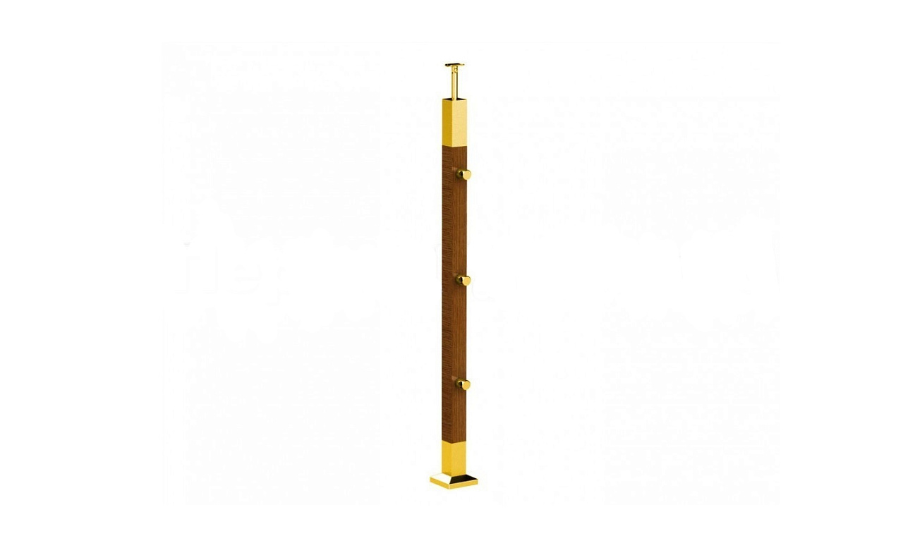 Готовая стойка 40х40х950 мм, деревянная, со вставками из нержавеющей стали 2х100 мм с 4 зажимными стеклодержателями, под золото k740-3-G купить в Екатеринбурге