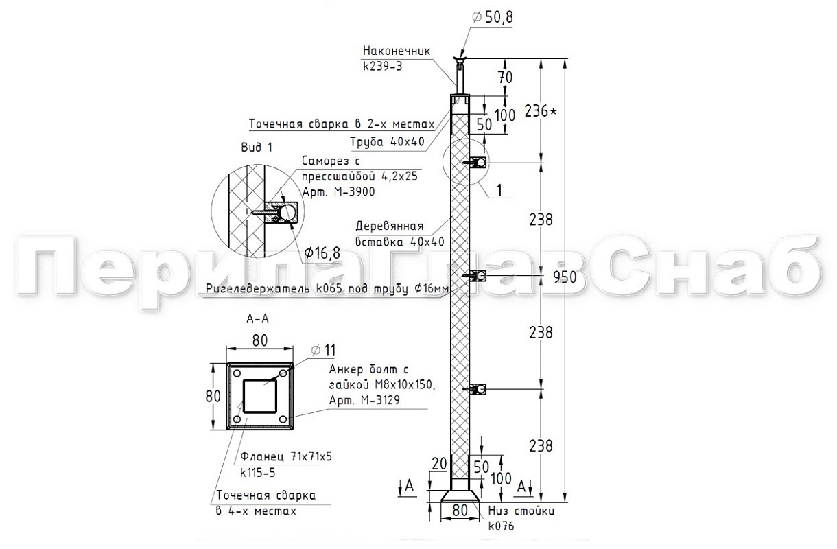 Готовые стойки – это экономия вашего времени и денег. Приобретая готовую стойку Вы можете собрать ограждение сами, не привлекая монтажную бригаду и экономя денежные средства на монтаже. Стойка легко монтируется к полу благодаря четыреханкернуму фланцу с отверстиями под анкер-болт М8 ( М-3129М-3843М-3838) или шпильку ( М-3959М-3969) в комплекте с хим анкером Ф-0799 или Ф-0800, а крепеж скрывает декоративная крышка идущая в комплекте стойки. Поручень из нержавеющей стали можно закрепить при помощи самореза (М-3850М-3847М-3215), либо при помощи заклепки (М-3214) и винта М6 (М-3973) что на порядок эффективней, для крепления при помощи заклепок необходимо растачивать отверстие в ложементе. Если вы используете деревянный поручень, то его можно закрепить при помощи саморезов ( М-3217М-3850М-3215). После покраски дубовой проставки подклеиваете клеем ( Ф-1127Ф-1105). Ограждение готово!