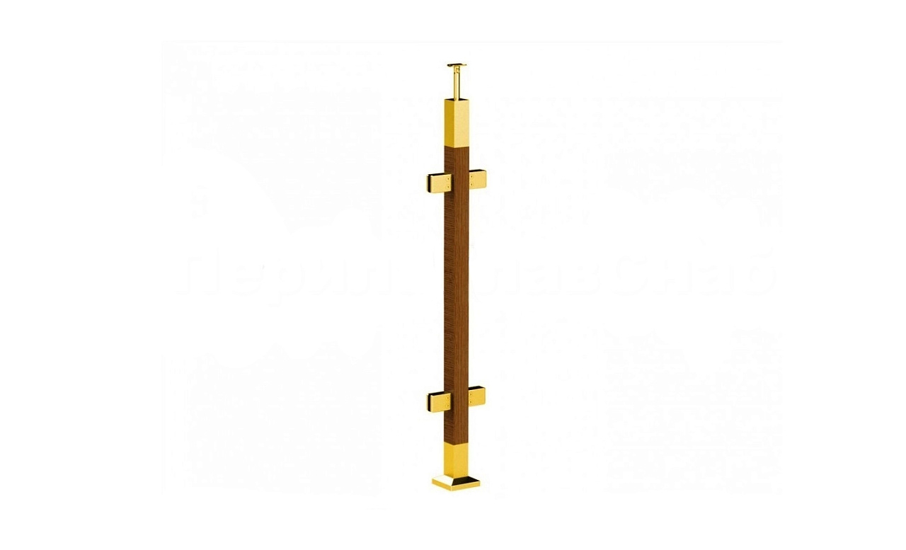 Готовая стойка 40х40х950 мм, деревянная, со вставками из нержавеющей стали 2х100 мм с 2 зажимными стеклодержателями, под золото k740-4-R-G купить в Екатеринбурге