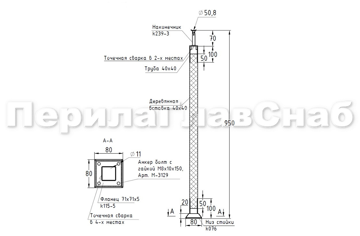 высота 950 ммпрофиль 40х40всавка - дубложемент под 38-60