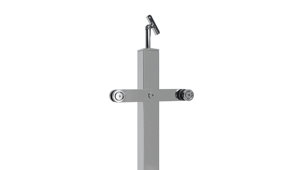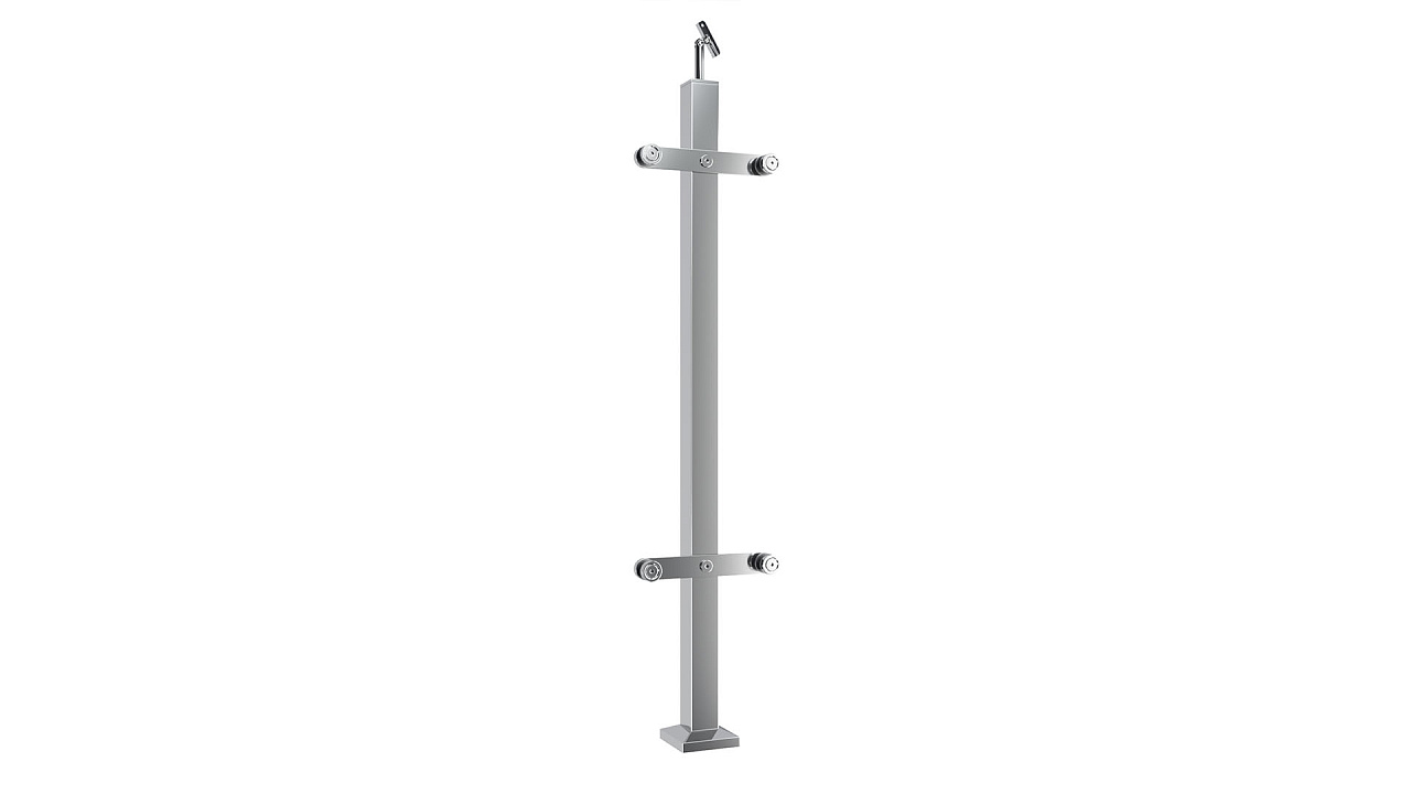 Cтойка квадратная 40х40: 2 пластинчатых стеклодержателя, полированная, высота 950 мм (aisi 304)
