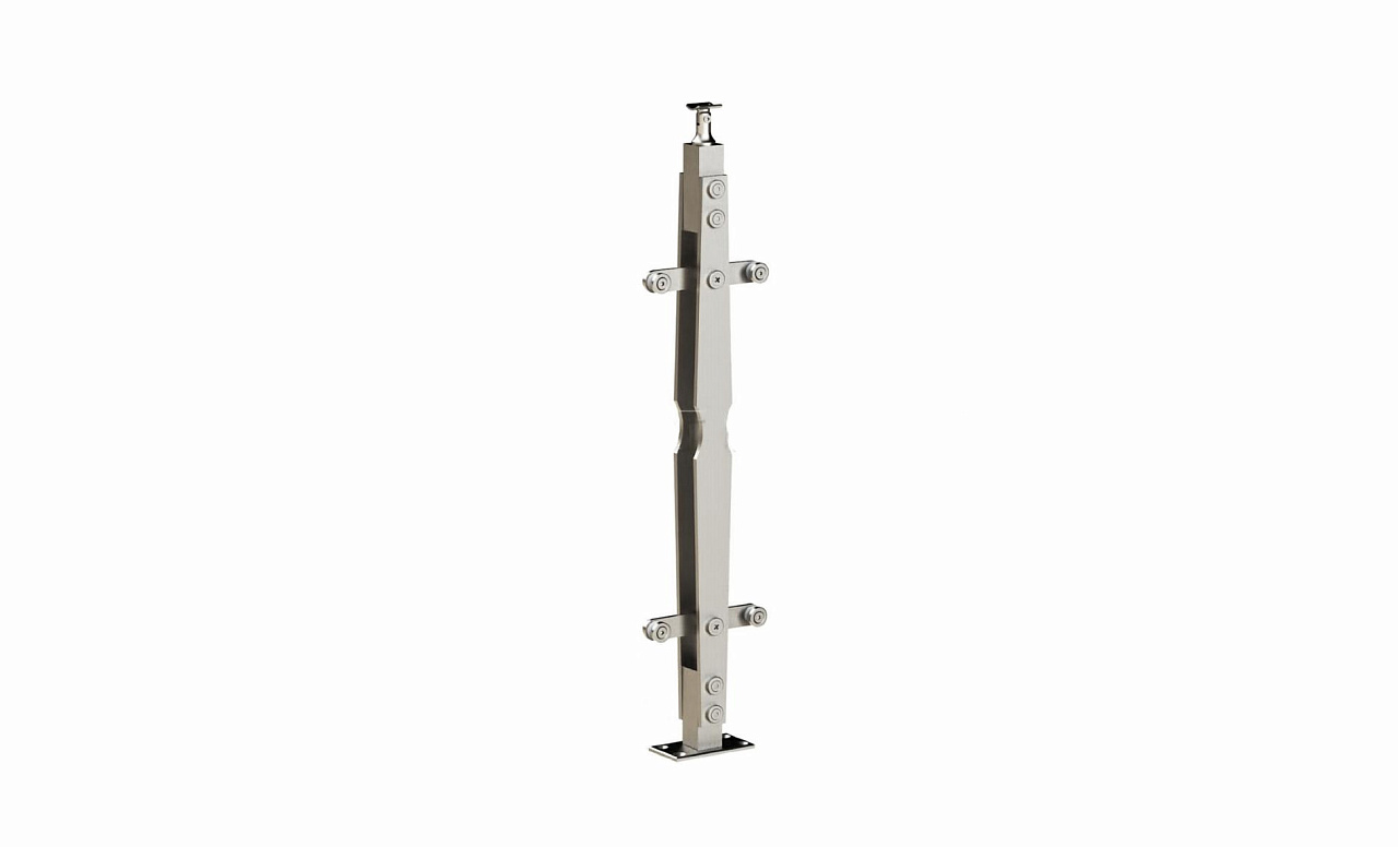 Стойка квадратная 40х40: 4 литых стеклодержателя, полированная, высота 950 мм (AISI 304) k746 купить в Екатеринбурге