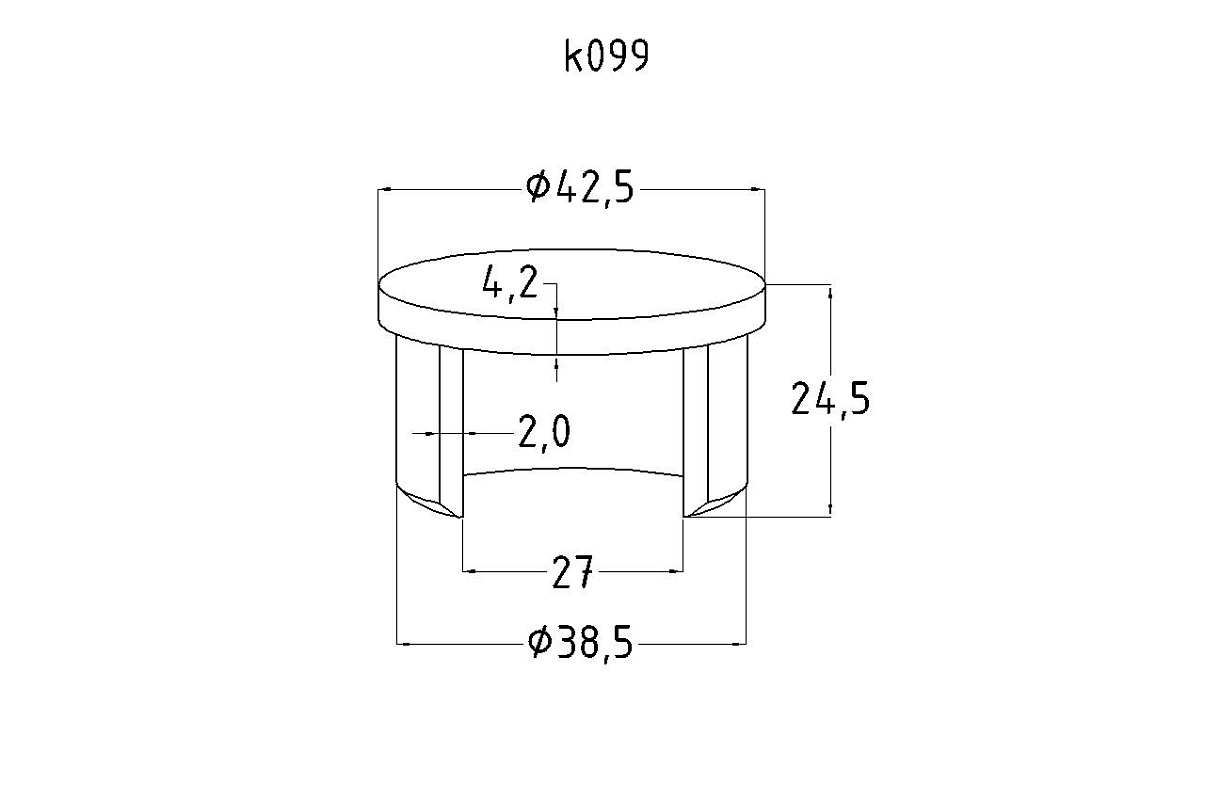 Заглушка для поручня с пазом Ø42.4 мм 5х34 мм полированная (AISI 316) k099