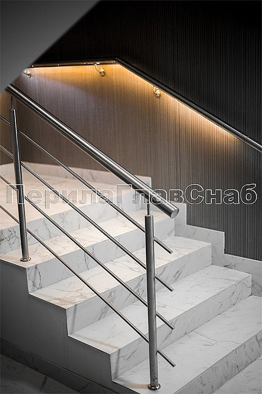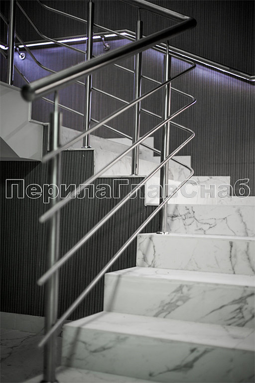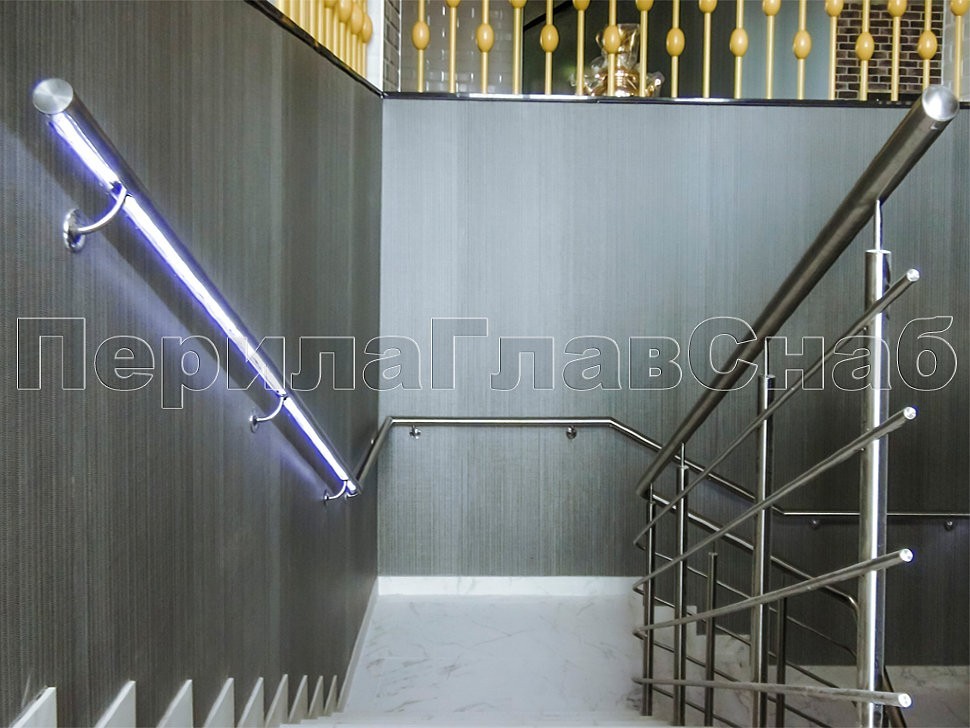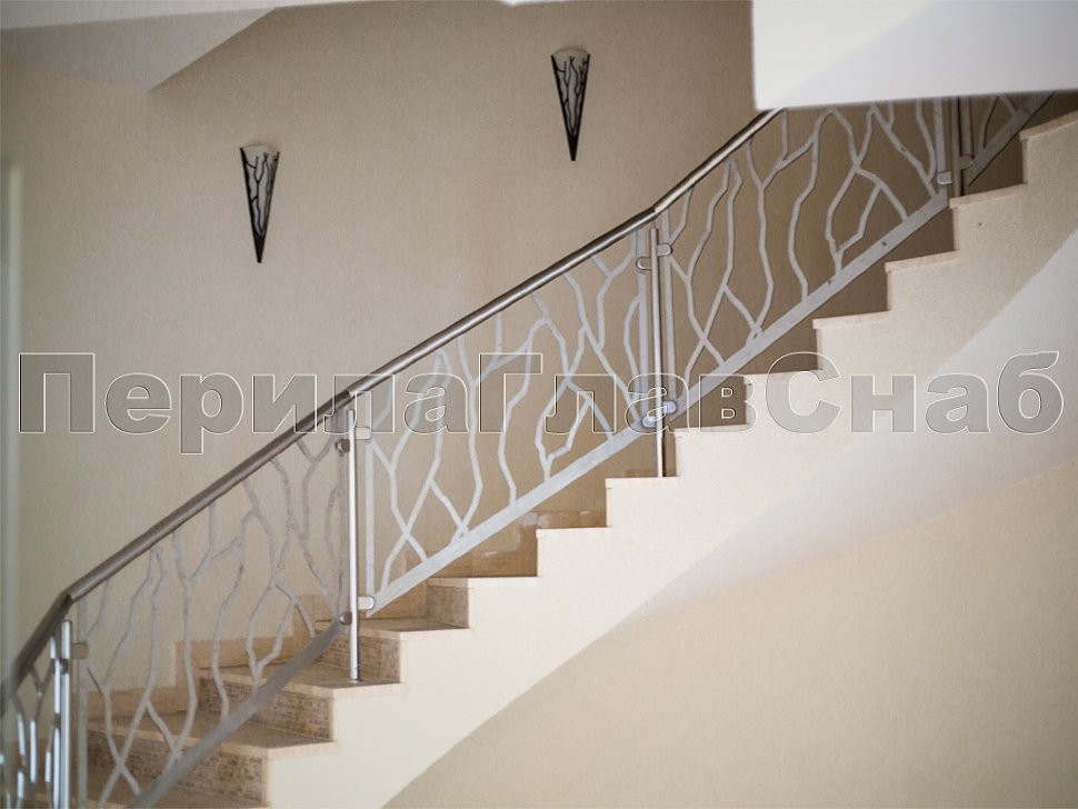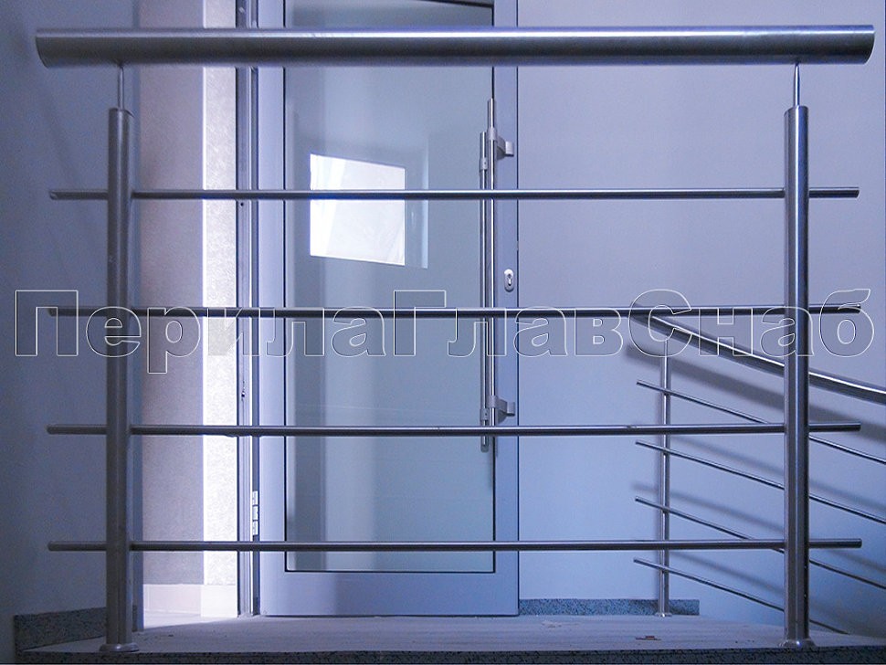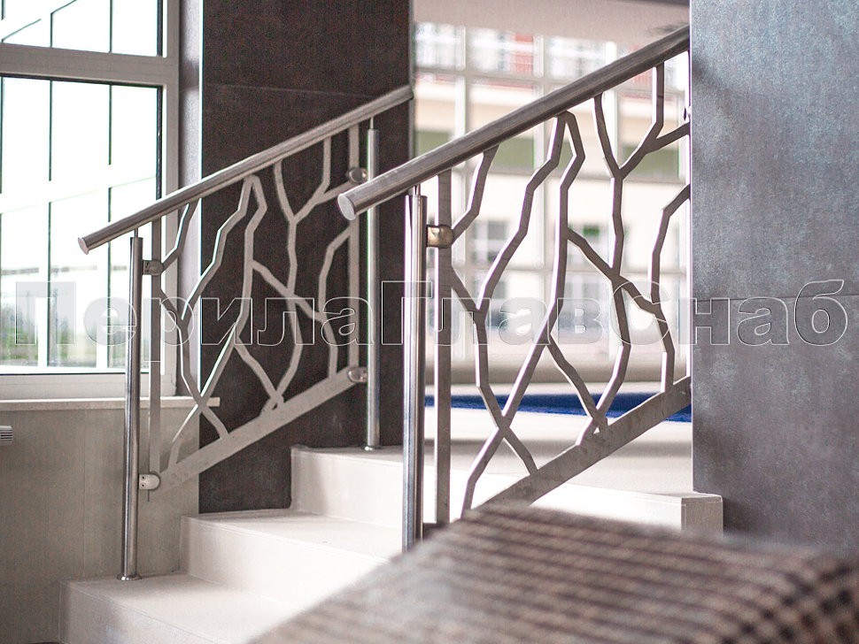 Также стоит отметить ограждения с декоративными металлическими листами, которые крепятся на стандартных стеклодержателях. Несмотря на простоту самой конструкции, она потребовала дополнительных работ по обработке листа внутри ограждения и очистки краев от металлических заусенцев. Эта задумка дизайнеров помещения превосходно была реализована нашими опытными монтажными бригадами, опыт каждой из которых составляет не менее 10 лет.
