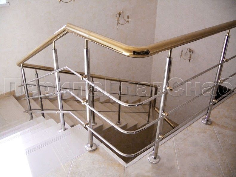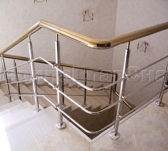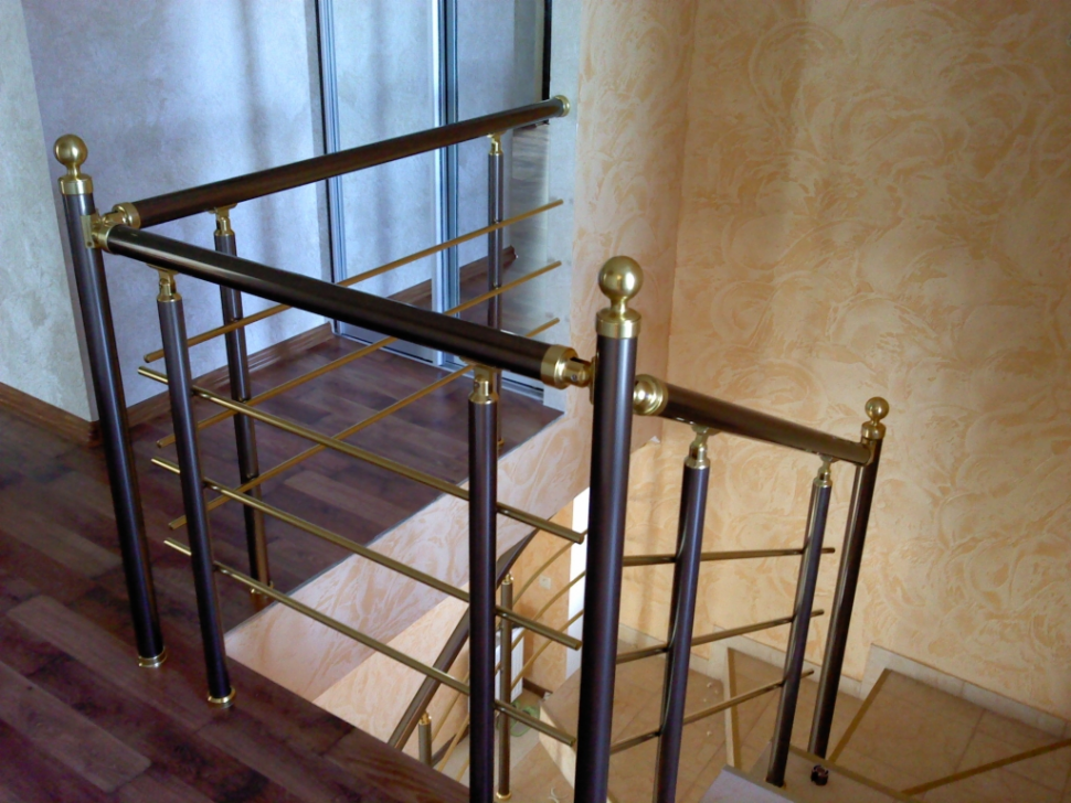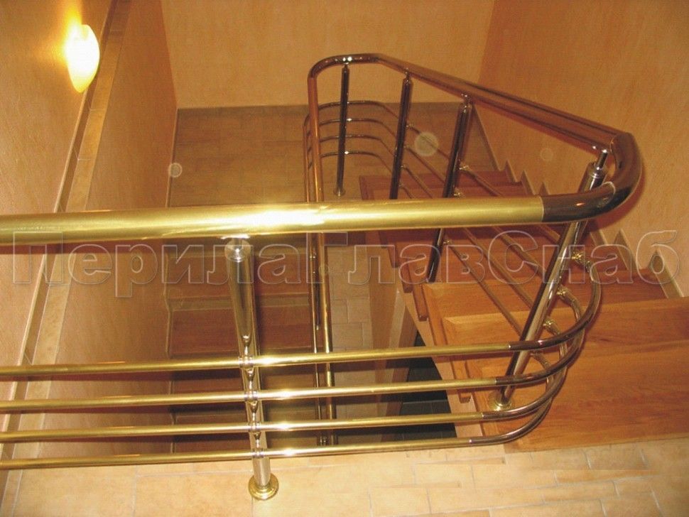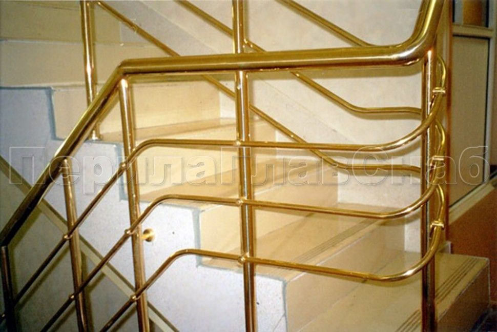 - Лестничное ограждение с тремя ригелями и поручнем из латуни