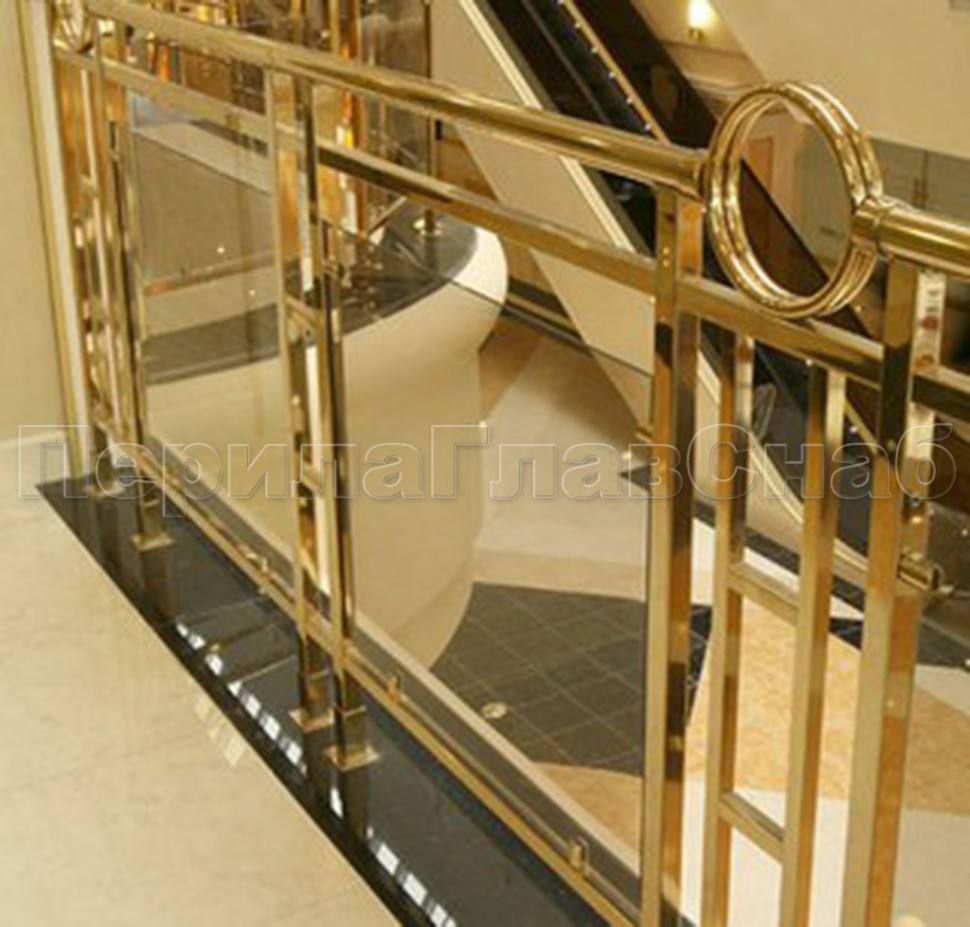 Лестничное ограждение с тремя ригелями и поручнем из латуни